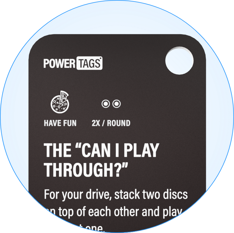 PowerTags amplify traditional tags by layering in a new way to play. Our power-up system creates balanced competition for all skill levels, challenges for advanced players, and calculated chaos to engage small cards and large groups alike.